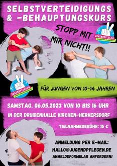 Am Samstag, den 06.05.2023 findet von 10.00 bis 16.00 Uhr ein Selbstbehauptungs- und Verteidigungskurs für Jungen im Alter von 10 bis 14 Jahren in Kirchen-Herkersdorf statt. In dem von zwei sachkundigen Karatetrainern (Karateclub Puderbach) durchgeführten Kurs sollen den Teilnehmern, Selbstverteidigungs- und Selbstbehauptungstechniken vermittelt und intensiv eintrainiert werden. Es werden Karate „Trittkicks“ beigebracht sowie das „sanfte Fallen“ (Abrollen des Körpers auf Matten). Zudem lernen die Jungen sich aus dem „Schwitzkasten“ und aus einer Umklammerung zu befreien. Neben den aktiven Körperübungen findet ein Selbstbehauptungstraining statt. In Gruppenspielen lernen die 10 bis 14- Jährigen, Teamgeist zu entwickeln und als Team/Gruppe knifflige Aufgaben zu lösen. Ziel des Kurses soll sein, eigene Handlungsmöglichkeiten zu entwickeln, das Selbstbewusstsein zu stärken und vorrangig mit Gleichaltrigen viel Spaß zu haben.