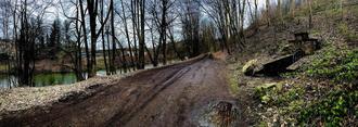 Ein Teilstück des Siegradwegs wird über den Wirtschaftsweg Bullenkamp führen. Auf den Fotos ist auch der Eingang des Stollens Bullenkamp zu sehen.