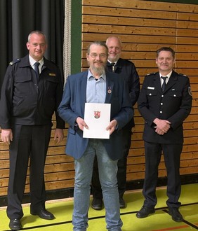von links: BKI Ralf Schwarzbach, Rainer Schmitt, Thomas Pfeifer und Volker Hain (beide Vorstand Kreisfeuerwehrverband)