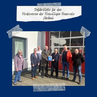 In der Gemeinde Harbach wurde nun ein Defibrillator am Feuerwehrgerätehaus installiert. Die Vorstandsmitglieder der VR-Bank, Jörg Padtberg und Matthias Jung freuten sich, den Defibrillator übergeben zu können. Das Bild zeigt von links: Sonja Zart (1.Beigeordnete der Ortsgemeinde), Matthias Jung, Karsten Schulze (Beigeordneter), Jörg Padtberg, Rudolf Jung (Feuerwehr Harbach), Andreas Buttgereit (Ortsbürgermeister der Gemeinde Harbach) und Thorsten Schneider (Förderverein der Feuerwehr Harbach).