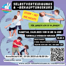 Anmeldung unter: www.unser-ferienprogramm.de/jugendpflegen (ab Mittwoch, 07.05.2025 - 18.00 Uhr)