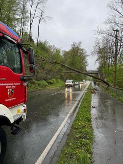 Ein weiterer Baum stürzte im Bereich der L 279 und wurde durch den Löschzug Friesenhagen beseitigt.