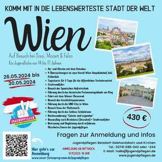 Für Kurzentschlossene sind noch wenige Plätze bei der Bildungsfahrt in die österreichische Hauptstadt Wien frei. Vom 26.05. bis zum 30.05. erwartet die Teilnehmer/-innen ein kunterbuntes Programm aus Kultur, Politik, Freizeit und Geschichte. Mit dabei ist auch ein Abstecher nach Bratislava, die Hauptstadt der Slowakei. Die Fahrt kostet 430 €.