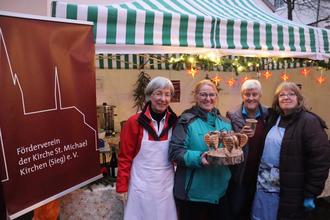 Die Stadt Kirchen (Sieg) feierte die dritte Auflage ihres Weihnachtsmarktes am Rathausplatz. Wie bereits die letzten Jahre boten die Kirchener Vereine so allerlei. Der Heimatverein Kirchen beglückte die Besucher mit Glühwein, während der VFL Kirchen für die Kaltgetränke sorgte. Der 1. Kirchener Klickerverein bot neben Bratwurst seine leckeren Klickertaler an. Der Förderverein St. Michael verkaufte Waffeln und der Verein "Sonnenstrahlen" für Owerri bot für eine Spende kleine Geschenkideen. Berthold Schirmuly und Franz Spork stellten ebenfalls ihre Holzarbeiten für einen guten Zweck aus. Nicole Zander präsentierte Postkarten aus alten Büchern. Nicht fehlen durften die Stars des Siegtal Musicals. Diese präsentierten sich mit Stand, mischten sich aber auch immer wieder unters Publikum. Neben den Ständen der Vereine gab es ein kleines Bühnenprogramm. Nach der Begrüßungsrede durch Bürgermeister Andreas Hundhausen mit Organisator Sven Wolff, folgte als erstes der Nikolaus, um die kleineren Besucher zu überraschen. Im Anschluss sorgte der Saxofonist Yannik Morgenschweis für einen tollen Start in den Abend. Frank Neuser gab folgend mit seiner Lichtshow "Monus" den Besuchern etwas zum Staunen. Als Vorletzter Act präsentierte sich das Stadtorchester Kirchen e.V..