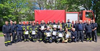 Hain und Freese dankten dem für die Ausrichtung verantwortlichen Sprecher der Wertungsrichter Andreas Krüger sowie dem örtlichen Bürgermeister Jürgen Giehl für die Benutzung der Örtlichkeiten. Unter den Besuchern auch der stellv. Brand- & Katastrophenschutzinspekteuer Florian Jendrock, welcher genau wie der stellv. Wehrleiter Boris Bläser sich beim Kreisfeuerwehrverband für die gelungene Veranstaltung bedankten.