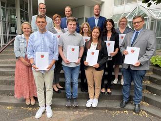 Bürgermeister Andreas Hundhausen wünschte am Schluss den neuen Auszubildenden einen motivierten Start in ihre Ausbildungszeit und allen anderen weiterhin einen erfolgreichen Lebensweg. Den Glückwünschen schlossen sich Ausbildungsleiterin Swetlana Neufeld und Personalratsvorsitzender Alexander Grindel an.