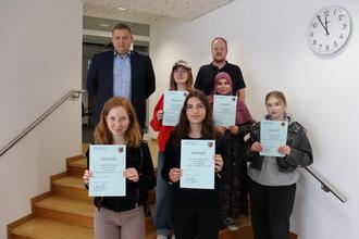 Zum Ende des Tages traf man sich dann wieder im Ratssaal zur Nachbesprechung und Präsentation des Imagefilms zur Ausbildung in unserer Verbandsgemeindeverwaltung. Alle Teilnehmerinnen bekamen zum Abschluss eine Urkunde sowie ein paar Erinnerungen an den Tag in unserer Verwaltung in Form von einem Block, einem Kuli sowie einem Textmarker von überreicht. Wir unterstützen mit Freude die Möglichkeit ein Praktikum in unserem Haus zu absolvieren und erwarten zu jedem Zeitpunkt interessierte Bewerbungen. Meldet euch gerne!