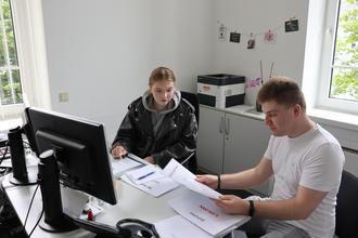 Die Schülerinnen wurden im Anschluss jeweils einem Fachbereich zugeordnet, in welchem sie den restlichen Vormittag hospitieren durften. Neben allgemeinen Informationen durften die fünf interessierten Schülerinnen Aufgaben mit den Mitarbeitern der jeweiligen Fachbereiche simulieren bzw. den Kolleginnen und Kollegen mal „über die Schulter“ schauen.