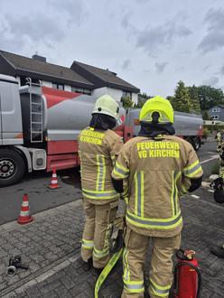 Während eines Umpumpvorgangs verlor ein Tank-LKW eine größere Menge Heizöl. Mit dem eintreffen der ersten Kräfte aus Herkersdorf wurde der Brandschutz sichergestellt, die Einsatzstelle abgesichert und ein weiteres auslaufen gestoppt. Der Löschzug Kirchen unterstützte hierbei personell. Die Firma des Heizöl-LKWs hatte bereits eine Reinigungsfirma bestellt, für die Dauer der Reinigungsarbeiten wurde die Einsatzstelle weiter abgesichert.