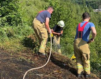 Aufgrund von Schweißarbeiten war es zu einem kleineren Flächenbrand gekommen, der mit Wasser unter Zusatz von Netzmitteln zügig abgelöscht wurde.