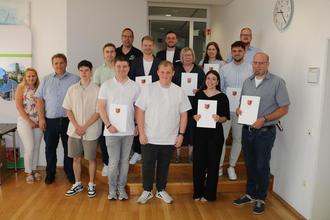 So haben in diesem Jahr Lynn Bröhl und Jonas Petznick die Ausbildung zur/zum Verwaltungsfachangestellten abgeschlossen. Für Bröhl war es gleichzeitig der Ausbildungsstart für das 3. Einstiegsamt. Diese Ausbildung haben Elias Bohl und Simon Rommersbach bereits erfolgreich beendet. Beide wurden zu Verbandsgemeindeinspektoren im Beamtenverhältnis auf Probe ernannt. Glückwünsche zu ihren bestandenen Prüfungen erhielten auch Niklas Bäcker (2. Einstiegsamt) und Colin Krüger (Fachkraft für Wasserversorgungstechnik). Ganz neu im Rathausteam ist Marcel Henn, für den mit der Ausbildung zum Verbandsgemeindesekretär (2. Einstiegsamt) ein neuer Lebensabschnitt begonnen hat.