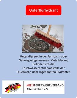 Auch im Kreis Altenkirchen ist der Winter eingekehrt. So schön die Natur und die Schneemengen auch sind, so stellen sie nicht selten auch eine Gefahr dar. Nicht nur auf den Straßen kann der Schnee für Unfälle sorgen, sondern auch beim Einsatz der Feuerwehr kann Schnee zum echten Problem werden. Die Feuerwehren stellen bei Einsätzen in den Wintermonaten immer wieder fest, dass ein Teil, der für die Entnahme von Löschwasser benötigten Hydranten, welche sich meist in der Fahrbahn, im Gehweg oder seltener auch im Randstreifen eingebaut sind, vereist und oft mit Schnee bedeckt sind.