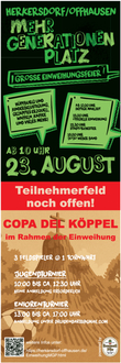 die Stadt Kirchen und der Ortsbeirat Herkersdorf/Offhausen laden alle Bürgerinnen und Bürger ganz herzlich zur Einweihungsfeier des Mehrgenerationenplatzes Herkersdorf/Offhausen am Samstag, 23. August 2025 ein.
