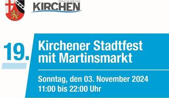 Das 19. Kirchener Stadtfest mit Martinsmarkt ist in diesem Jahr für am Sonntag, den 03. November 2024 geplant.