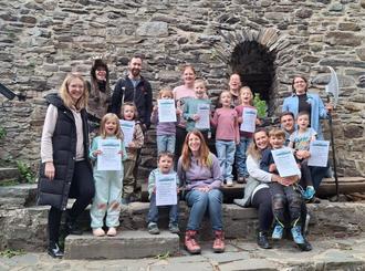 Vergangenen Samstag bot das Familienzentrum einen kostenfreien erlebnisreichen Nachmittag für Familien an. Gemeinsam mit der Erlebnispädagogin Susanne Wilmsen begaben sich die TeilnehmerInnen auf eine spannende Reise und erfuhren allerhand Spannendes über Ritter und Burgen. Keine Aufgabe war ihnen zu schwer. Ob gemeinsam einen Fluchtweg aus dem Verließ zu bewältigen, beim Ritterball, der Rettung von Wildschwein Ebi oder beim Lanzenwettbewerb und Schwertkampf. Die starke Truppe meisterte alles mit Bravour. Zum Höhepunkt der Veranstaltung zählten die Schatzsuche und der anschließende Ritterschlag im Burginnenhof.