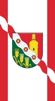 Das Gemeindewappen ist beidseitig auf einem wertigen Fahnenstoff
