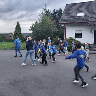 So ging es zunächst zu einem „Flächenbrand“. Hier mussten die Kinder auf verschiedene Arten eine „brennende Fläche“ überqueren. Von hüpfend, über klatschend und rückwärts laufend war einiges dabei.