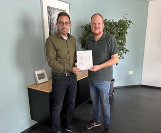 Bürgermeister Andreas Hundhausen (rechts) und Fachbereichsleiter Tim Kraft freuen sich über die Förderzusage für die Erstellung eines kommunalen Wärmeplans in der VG Kirchen.
