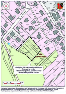 Der Rat der Verbandsgemeinde Kirchen hat in öffentlicher Sitzung am 23.09.2025 aufgrund von § 2 Abs. 1 BauGB die Aufstellung der Änderung Nr. 13 des Flächennutzungsplans der Verbandsgemeinde Kirchen „Die Ehrenwiese“ beschlossen und die Verwaltung damit beauftragt die erforderlichen Verfahrensschritte einzuleiten. Die Aufstellung des dazugehörigen Bebauungsplans „Auf der Ehrenwiese“ soll im Parallelverfahren gemäß § 8 Abs. 3 BauGB erfolgen.