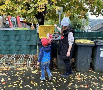 So bastelten die Kinder der Kita Wirbelwind Freusburg Bildkarten mit verschiedenen Produkten, die Hinweise darauf geben, in welchen Eimer der jeweilige Müll hineingehört. Um weitere recycelbare Ressourcen kennenzulernen, hatten die Kinder außerdem beim Wegbringen von Glasmüll geholfen. An den Altglascontainern erkannten die Kinder schnell, dass die verschiedenen Farben der Gläser ebenfalls sortiert werden müssen.