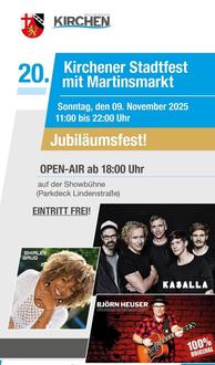 20 Jahre Kirchener Stadtfest am Sonntag, den 09. November 2025 – Jubiläum mit Martinsmarkt, Musik & mehr!