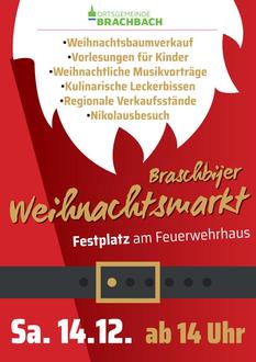 Im Rahmen des bereits 12. Weihnachtsmarktes am Samstag, 14.12.2024 ab 14 Uhr ermöglicht die Ortsgemeinde Brachbach rund um den Festplatz des Feuerwehrhauses wieder ein besinnliches Beisammensein und ungezwungene Gespräche.