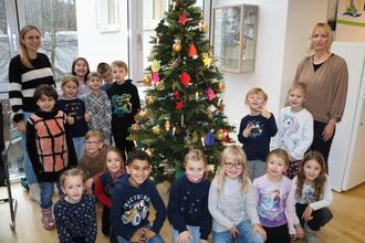 „Die Mitarbeiterinnen und Mitarbeiter hier im Rathaus, die Ratsmitglieder und alle, die hier aus- und eingehen, werden sich ganz sicher an dem schönen Baum erfreuen“, bedankte sich Büroleiter Michael Dützer bei den Schülerinnen und Schülern für das tolle Engagement. Als kleine Belohnung durfte jedes Kind einen Schokoladennikolaus mit nach Hause nehmen.
