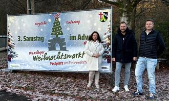 Gemeindesekretärin Bettina Haupt, Erster Beigeordneter Patrick Zöller und Ortsbürgermeister Steffen Kappes (v. l.) haben in diesem Jahr die Organisation des „Braschbijer Weihnachtsmarktes“ übernommen.