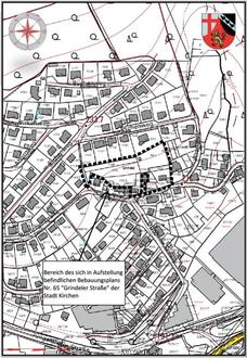 Der Rat der Stadt Kirchen in öffentlicher Sitzung am 05.12.2024 aufgrund von § 2 Abs. 1 BauGB die Aufstellung des Bebauungsplans Nr. 65 „Grindeler Straße“ beschlossen und die Verwaltung beauftragt die erforderlichen Verfahrensschritte einzuleiten. Die Aufstellung erfolgt im beschleunigten Verfahren nach § 13a BauGB.