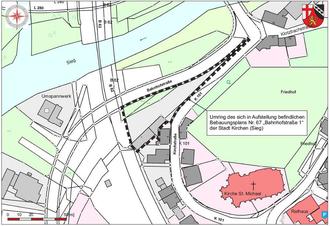 Der Rat der Stadt Kirchen hat in öffentlicher Sitzung am 05.02.2025 aufgrund von § 2 Abs. 1 BauGB die Aufstellung des Bebauungsplans Nr. 67 "Bahnhofstraße 1" beschlossen und die Verwaltung beauftragt die erforderlichen Verfahrensschritte einzuleiten. Die Aufstellung erfolgt im beschleunigten Verfahren nach § 13a BauGB.