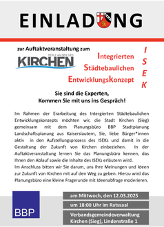 Es wird um Anmeldung per E-Mail an bauamt@kirchen-sieg.de bis zum 10. März 2025 gebeten.
