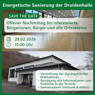 unsere Druidenhalle wurde nach einer energetischen Sanierung am 05.11.2025 wieder für die Nutzung freigeben. Neben der energetischen Sanierung wurden zudem viele funktionale und optische Verbesserungen realisiert.