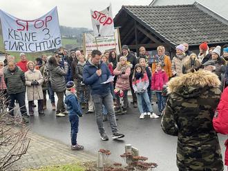 Der Protest wird immer größer in Mittelhof. Mehr als 150 Menschen kamen zur Demonstration gegen die Planungen der Hands of Hope aus dem Siegerland in der alten Dorfschule eine Jugendhilfeeinrichtung einzurichten.