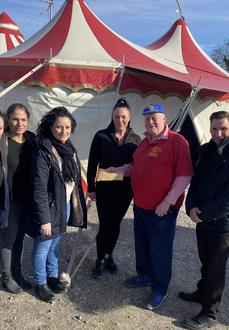 Mitglieder des Migrationsbeirats übergaben zusätzlich die Spende des Eigenanteils am Eintrittsgeld an die Zirkusfamilie.