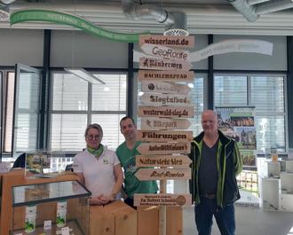 Ab und zu soll es etwas Neues geben in der Tourist-Information im Wissener RegioBahnhof, auch Kleinigkeiten zeigen Wirkung. So der neue Schilderbaum, der zügig umgesetzt werden konnte. Auf heimischem Brettholz wurden - von der Firma Robert Schmidt („Stohlspitter“) in Wissen gesponsert - entsprechende Highlights der Region gelasert. Vom Auenlandweg über den Bikepark bis zum Siegtalbad ist hier einiges zu finden. Natürlich dürfen auch die wichtigsten touristischen Homepages wie westerwald-sieg.de nicht fehlen.