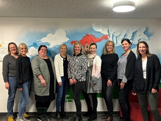 Von links nach rechts: Jennifer Hartmann (Schriftführerin), Theresa Brenner (stellvertretende Leitung), Nicole Noreikat (neue Leitung), Kathrin Schmidt (ehemals 2. Vorsitzende), Christina Hoffmann (Kassiererin), Yvonne Hüsch (2. Vorsitzende), Petra Müller-Loosen (Leitung), Rebecca Bruchertseifer (Kassenprüferin), Antonia Fehling (1. Vorsitzende)