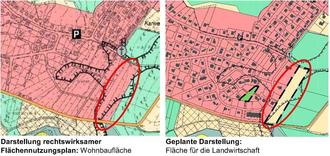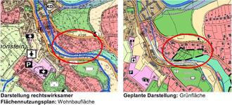Die Änderung des Flächennutzungsplans in Bereich des Ortsteils Schönstein stellen sich folgendermaßen dar: