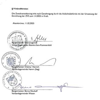 Diese Zweckvereinbarung wurde gemäß § 12 Abs. 2 KomZG von der Kreisverwaltung Altenkirchen als Kommunalaufsicht mit Schreiben vom 7. März 2025 genehmigt.