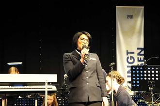 Der Auftakt zum Konzert wurde traditionsgemäß durch das Jugend-blasorchester gestaltet. In diesem Jahr wurden die jungen Musikerinnen und Musiker durch das Schulorchester der Marion-Dönhoff-Realschule Wissen unterstützt. Unter der Leitung von Tobias Stahl begeisterte der Nachwuchs die Zuhörer und erhielt den verdienten Applaus. Im Anschluss bewies das Orchester wie breit gefächert das Repertoire eines Blasorchesters sein kann. Neben Märschen gehören auch Ouvertüren und Popsongs dazu. Für das Stück „From a Distance“ hatten sich die Verantwortlichen stimm-gewaltiger Unterstützung versichert. Lisette Whitter, vielen durch ihre Auftritte bei „The Voice of Germany“ bekannt, konnte mit ihrer besonderen Stimmfarbe und ihrer Performance überzeugen.