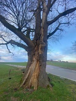 Aufgrund der direkten Nähe zur angrenzenden Straße sowie des unmittelbar an der Eiche befindlichen Platzes ist eine Fällung bzw. eine starke Einkürzung auf den Stammtorso leider zwingend erforderlich und unvermeidbar. In den letzten Jahren wurden sämtliche mögliche Pflege- und Erhaltungsmaßnahmen für die Eiche durchgeführt, aber die stark fortgeschrittene und nicht sanierbare Schädigung des Baumes lässt nun leider keine Alternative mehr zu der erforderlichen Fällung. Ein Stehenlassen des Baumes wäre grob fahrlässig und unverantwortlich.