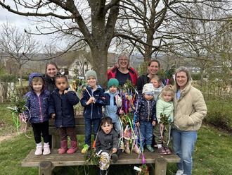 In Zusammenarbeit den Frauen der kfd Schönstein, dem Förderverein und der Netzwerkerin der Kita bastelten die Kinder der „Villa Kunterbunt“ Palmzweige. Aus Bambusstöcken, Buchsbaum und bunten Bändern entstanden viele, schöne Kunstwerke. Am Palmsonntag durften die Kinder dann mit ihren Palmzweigen, gemeinsam mit den Kommunionkindern, in die kath. Kirche Schönstein einziehen. Anschließend wurde in der Krypta ein Kindergottesdienst gefeiert, in dem der Einzug nach Jerusalem und die Ostergeschichte erzählt wurde und einige Lieder gesungen wurden. Die Kinder hatten viel Freude dabei und präsentierten stolz ihre Palmzweige.