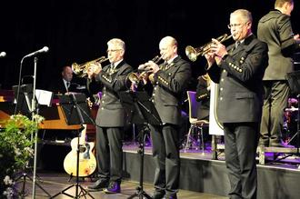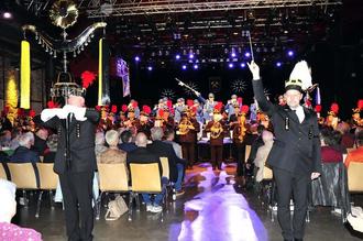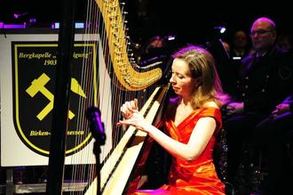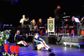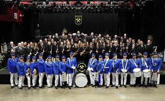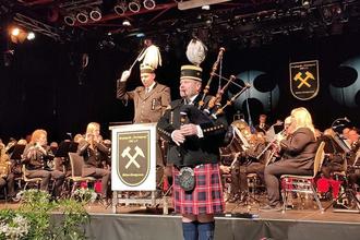 Marquis des Baux, ein Stück aus der Feder von Sven Hellinghausen, und die, gemeinsam von Hellinghausen und Norbert Gälle geschriebene, „Wolka Nr. 1, eine gelungene Symbiose von Walzer und Polka, führten zu einem weiteren Höhepunkt des Konzertes. Michael Stricker, Karl Reifenrath und Thomas Schneider brillierten als Solisten bei dem Stück „Drei Tops“. „Rock Classics“ mit Andreas Demmer an der Gitarre zeigte dann das Ende des Konzertes an. Das bekannte Steigerlied, das im März 2023 in das Verzeichnis des immateriellen Kulturerbes aufgenommen wurde, beendete das Konzert. Aber auch hierfür hatten sich die Verantwortlichen etwas Besonderes einfallen lassen. Jochen Brand stimmte mit seinem Dudelsack ein. Ohne Zugaben ließ das begeisterte Publikum die Bergkapelle natürlich nicht von der Bühne. Zum Abschluss gab es stehende Ovationen für alle Musikerinnen und natürlich für die beiden jungen Tänzerinnen. (kkö)