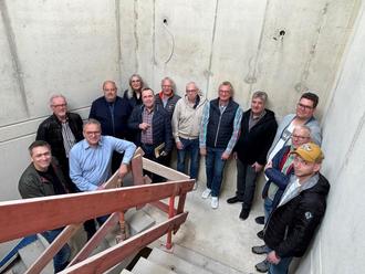 Schwierigkeiten, berichteten beide, gab es bei der Gründung des Bauwerks 2023. Der nasse Winter hatte den lehmigen Boden völlig aufgeweicht und teilweise die Grube einstürzen lassen. Nachbarbauten rückten beim Abrütteln näher auf die Grube zu und mussten abgefangen werden. Diese und andere Herausforderungen wurden während der bisherigen Bauphase gut gemeistert, berichteten Neuhoff und Eichhorn.