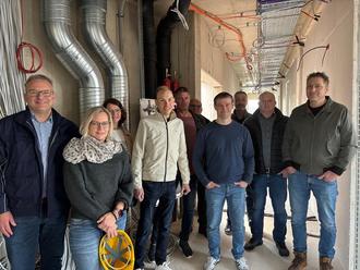 Marc Eichhorn, als zuständiger Bauingenieur und Projektleiter, wie auch Berno Neuhoff führten die Teilnehmer durch das neue Rathaus und erläuterten den Weg vom 3-D-Modell aus dem Drucker bis zur jetzigen innovativen Bauweise und dem zielgerichteten Planungsprozess. Marc Eichhorn: „Wir hatten bisher Glück mit dem guten Entwurf der Planer sowie dem guten Zusammenspiel der Büros und den beteiligten Firmen.“ Der neue Bau verfügt über eine moderne, klimagerechte Energieversorgung mit Luft-Wärmetauschern, bei der auf fossile Brennstoffe künftig ganz verzichtet wird.