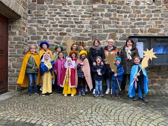 Eine fröhliche Kinderschar in bunten Gewändern, ausgestattet mit goldenen Holzsternen und rasselnden Spendendosen, bestimmten das Dorfbild Selbachs am Samstagvormittag nach Heilig Dreikönig. Die Sternsinger waren wieder unterwegs - 13 an der Zahl, die sich in vier Gruppen aufgeteilt hatten, um möglichst viele Haushalte in Selbach und Brunken aufzusuchen und den Segen „Christus mansionem benedicat“ (Christus segne dieses Haus) zu übermitteln. Die Bewohner freuten sich sehr über den königlichen Besuch und bedachten die Sternsinger als Dank mit Süßigkeiten. Aber vor allem gaben sie reichlich Spenden für weltweit tätige Projektpartner der diesjährigen Sternsingeraktion. Diese kümmern sich um Kinder, die in ihrem frühen Leben Gewalt jedweder Form ausgesetzt waren. Das gesammelte Geld wird in den nächsten Tagen ausgezählt.