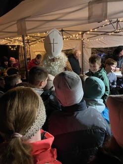 Petrus hatte ein Einsehen und so ging der schon 15. Weihnachtsmarkt des TuS 09 Honigsessen auf dem Dorfplatz Honigsessen ab dem frühen Samstagabend am 3. Adventswochenende komplett trocken über die Bühne. Der Markt hat sich mittlerweile klar etabliert und ist wieder zu einem beliebten Treffpunkt für das ganze Höhendorf und weitere Besucher aus den Nachbargemeinden geworden. An warmen und kalten alkoholischen und alkoholfreien Getränken wurde ein breites Sortiment angeboten, für den hungrigen Magen ging die Pizza von Klaus Stahl mit Helfern am Backes, wo auch frisches Brot gebacken wurde, weg wie warme Semmeln. Guten Umsatz machte auch Wölfi Würbel mit seinem Pommesstand und am Sonntag waren die Waffeln von Bernd und Karla Hoffmann schnell ausverkauft. An weiteren liebevoll hergerichteten Hütten im Weihnachtsmarktdorf konnten Dekoartikel, Bastelarbeiten oder Gaumenfreuden - etwa leckere Nüsse, Süssigkeiten oder Liköre - erworben werden. Die Moderation an beiden Tagen des vom TuS 09 und dem Förderverein TuSPluS organisierten Marktes übernahm gewohnt souverän Peter Reuber. Samstags sorgten schon traditionell die Parforcehornbläser Warnsbachtal für weihnachtliche Musik, am 3. Adventssonntag war es wieder die heimische Bergkapelle "Vereinigung", die unter der Leitung von Thomas Schneider vor allem Nikolauslieder anstimmte und so den Höhepunkt für die jüngsten Marktbesucher einleitete und musikalisch begleitete. Dieser bestand wieder in der Bescherung durch den Nikolaus, der zuvor besinnliche Worte an die Kinder richtete und eine Weihnachtsgeschichte vortrug (siehe Foto). Eine gewisse Ähnlichkeit mit unserem Stadionsprecher Michael Kölzer war dabei unverkennbar. Es folgte zum Abschluss des Marktes die traditionelle Tombolaverlosung, wo es neben vielen Gutscheinen und kleineren Sachpreisen auch Hauptpreise in dreistelliger Höhe zu gewinnen gab, etwa einen Fernseher sowie Gutscheine eines Möbelunternehmens und als Hauptpreis einen Reisegutschein über 300 Euro. An dieser Stelle bedanken sich die Veranstalter bei allen heimischen und regionalen Unternehmen für die Spenden zur Verlosung, ferner bei allen Helfern rund um den Weihnachtsmarkt und natürlich bei den zahlreichen Besuchern an beiden Tagen, die wieder zu einem erfolgreichen Weihnachtsmarkt beigetragen haben, der das Zusammengehörigkeitsgefühl im Ort gestärkt hat und aus dem Terminkalender von Birken-Honigsessen nicht mehr wegzudenken ist.
