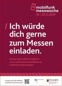 Das Ministerium für Arbeit, Soziales, Transformation und Digitalisierung des Landes Rheinland-Pfalz lädt zur landesweiten Mobilfunkmesswoche ein und ruft daher zur Mithilfe auf, um die Mobilfunkabdeckung in allen Landesteilen zu verbessern.