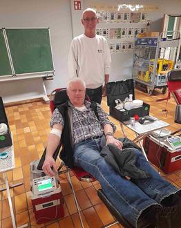 Heinz-Werner Brücher hat bereits 141 Mal unentgeltlich Blut gespendet. Und den nächsten Termin im Gymnasium am kommenden Freitag wird der Wissener vermutlich ebenfalls wahrnehmen. Betreut wird er hier von Hans-Dieter Hüsch als einem der ehrenamtlichen Helfer seitens der örtlichen DRK-Bereitschaft.