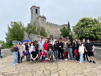 Die beiden Abschlussklassen 10a und 10b der Marion-Dönhoff-Realschule Plus in Wissen fuhren gemeinsam auf eine 7-tägige Reise in die Emilia Romagna. Begleitet wurden die 34 Schülerinnen und Schüler von ihren Klassenlehrern Nicole Krämer und Markus Kotte sowie ihrem Erdkundelehrer Benjamin Jung.