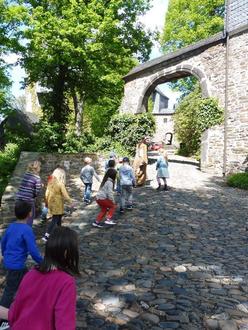 Ein weiteres Highlight war ein Ausflug zum Schloss Schönstein. Bei schönstem Sonnenschein haben sich die Kita Kinder und ihre Erzieher zu Fuß auf den Weg gemacht. Als von der Siegpromenade aus das Dach des Schlossturmes mit der Fahne zu sehen war stieg die Aufregung. Endlich am Schloss angekommen wurden die Kinder bereits vom Burgfräulein erwartet. Nach einer kurzen Verschnaufpause haben die Kinder den Innenhof des Schlosses besichtigt und jeder durfte mal einen Blick in den Kerker werfen. Von dort aus ging es dann auf Schatzsuche rund ums Schloss. Abgeschlossen wurde der Tag mit einem Rittermahl im Schlossgarten. Alle waren sich einig: Das war ein toller Ausflug!